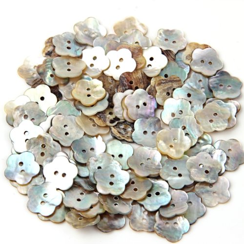 100 BOTTONE BOTTONI FIORE IN MADREPERLA CONCHIGLIA 15MM