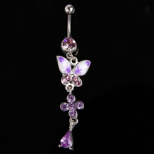 316L PIERCING DA OMBELICO BELLY FARFALLA VIOLA STRASS