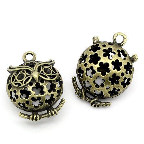 5 Ciondoli Pendenti Charms Gufo Base per Strass Colore Bronzo 3.5cm x 2.5cm
