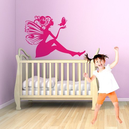 Adesivo Stickers murale per bambini "Fatina con farfalla" - Misure 70x70 cm - Decorazione parete, adesivi per muro