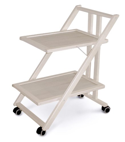 Description : CARRELLO SERVIZIO Pratico e confortevole carrello richiudibile per la casa, funge da pratico porta vivande grazie ai 2 capienti vassoi. Struttura in faggio massiccio, montato su ruote piroettanti antitraccia, disponibile nel color sbiancato. DIMENSIONI h79x64x45