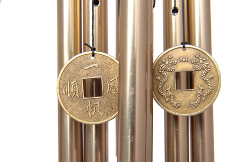 Bellissimo carillon di vento, 100% fatto a mano, pronto per appendere, "Barre di bronzo ed antichi iscrizioni cinesi" (1008A IT)