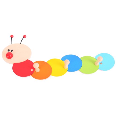 Description : Questo bruco in legno è colorato e utile. Perfetti per appendere cappotti, vestiti o altri oggetti, i tre appendiabiti resistenti in legno offrono tanto spazio per appendere in modo da garantire che l'area giochi sia pulita e in ordine. Non è un giocattolo. Fabbricato con materiali di elevata qualità e ricavati responsabilmente. Conforme alle Normative di Sicurezza europee in vigore. Altezza: 190mm, Larghezza: 400mm, Profondità: 50mm.