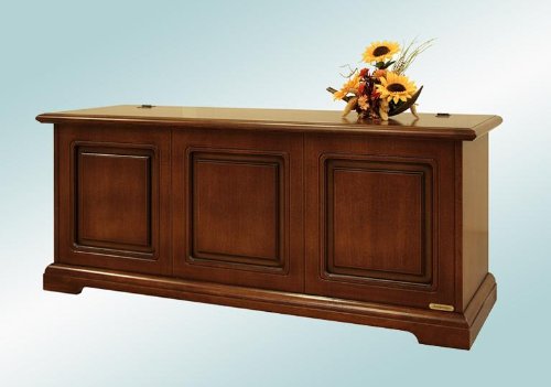 Description : Cassapanca a ribalta - Mobili Ingresso - Mobili in Stile Cassapanca apertura a ribalta, risponde con stile ad esigenze di arredo che tengono conto dell'utilità e, allo stesso tempo, dell'aspetto piacevole che un mobile deve possedere. Le possibilità di collocazione e di utilizzo di questa cassapanca sono molte: dal posizionamento sotto una finestra, alla collocazione in abbinamento ad altri accessori per ingresso, alla cameretta dei bambini, e molto altro. Struttura in legno di toulipier e MDF pantografato ricoperto di legno naturale di noce tanganica. Tinta ciliegio. Dimensioni: cm 125x 51 h x 40 Peso: 32 kg Altre immagini