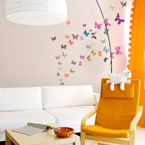 Decowall DW-1201, 38 farfalle colorate Adesivi da parete | wall stickers | adesivi da parete | muro del tatuaggio | Decorazione murale | decalcomania della parete