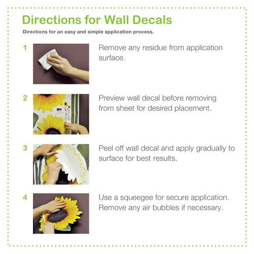 Description : Stickers adhere to any smooth, clean surface, and can be reused! Apply to any wall, window, or piece of furniture.