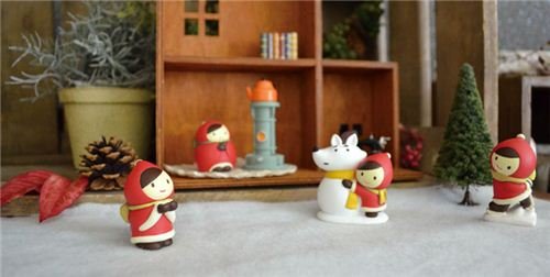 Figurina natalizia Cappuccetto Rosso sui pattini Giappone