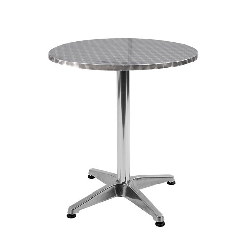 Tavolo rotondo in acciaio inox con bordo e piede in alluminio