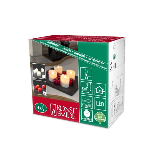 Konstsmide 1977-550 - Set candele a LED in vera cera, 4 pezzi con interruttore, 4 diodi bianco caldo, batterie incluse: 4xCR 3 V, colore: Rosso