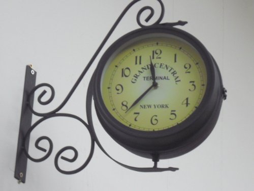 OROLOGIO DELLA STAZIONE DA METALLO CON TERMOMETRO, GRANDE, PER INTERNI ED ESTERNI- Tinas Collection