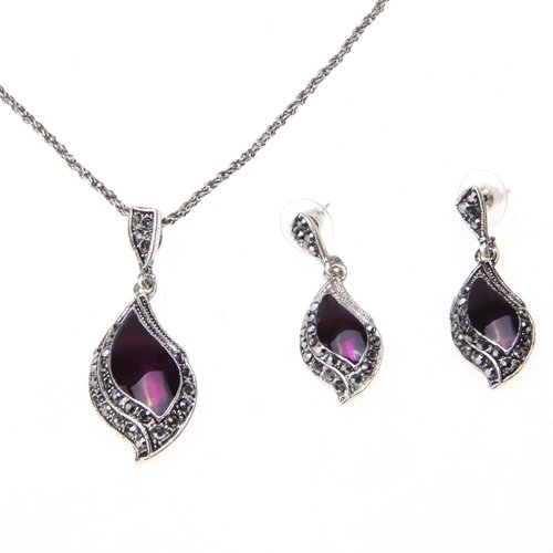 PARURE DONNA COLLANA + ORECCHINI PENDENTE STRASS VIOLA