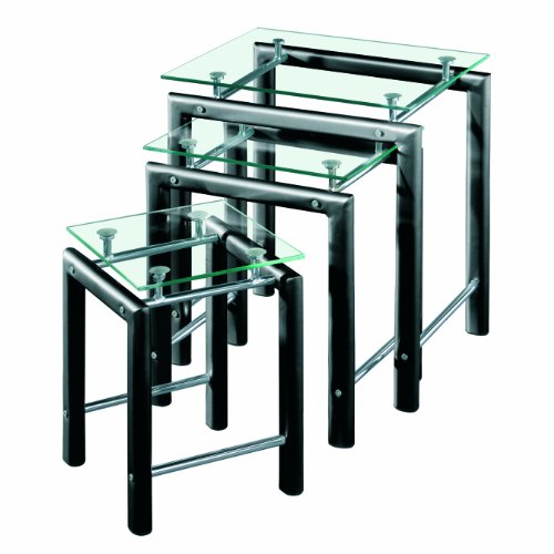 Premier Housewares Set di 3 tavolini con base in vetro e gambe nere verniciate a polvere, 60 x 48 x 37 cm