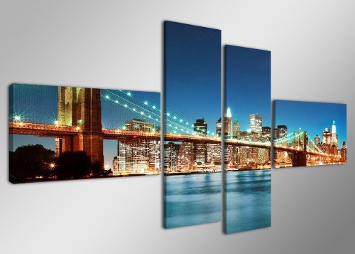 Quadro su tela New York 160 x 70 cm 4 tele modello nr XXL 6525. I quadri sono montati su telai di vero legno. Stampa artistica intelaiata e pronta da appendere