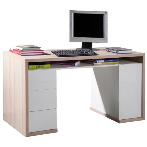 Scrivania moderna tre cassetti e anta frassino laccato bianco SR7045 L140h75p60