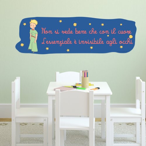 Description : Una delle piu' celebri citazioni de Il Piccolo Principe. Perle di saggezza per tutte le generazioni. I nostri wall sticker non hanno fondo trasparente. Solo i migliori materiali e i colori piu' brillanti da STIKID, lo specialista della decorazione della cameretta. Applicazione immediata - istruzioni incluse.