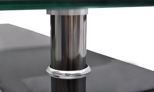 Moderno tavolino da salotto offerto da Prezzi Unici con elegante cromatura e due ripiani per riporre riviste, libri e oggetti vari.