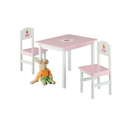 Zeller 13442 Set tavolo (60x48x45 cm) e sedie (28x26x54 cm) per bambini, 3 pezzi, in MDF, motivo principessa